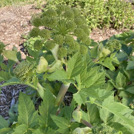 Elle est facile à cultiver dans un sol frais et riche, en plein soleil ou à mi-ombre. Plante bisannuelle, elle peut atteindre jusqu’à 2 mètres de hauteur et produit de grandes ombelles de fleurs vertes. L’angélique est rustique et se ressème spontanément, apportant une touche à la fois utile et décorative au jardin.
