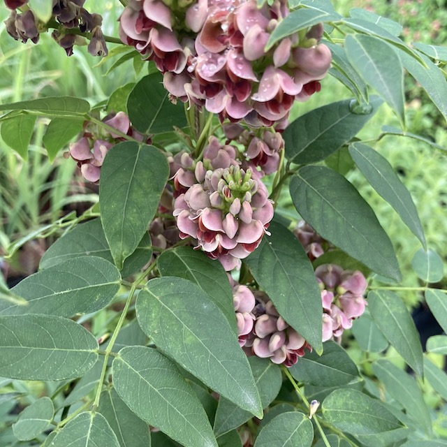 La glycine tubéreuse (Apios americana), ou haricot patate, est une plante grimpante vivace originaire d’Amérique du Nord, cultivée pour ses tubercules riches en nutriments et ses jolies fleurs pourpres parfumées.