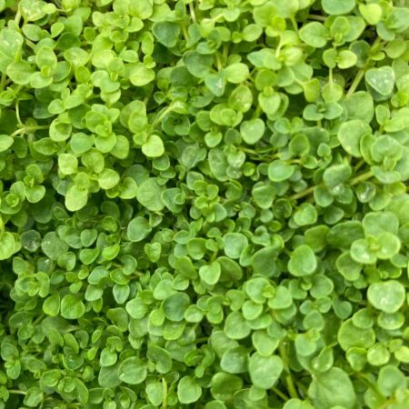 La menthe corse (Mentha requienii) est une plante vivace rampante et miniature, appréciée pour son feuillage dense et son parfum intense de menthol, légèrement citronné. Elle fait de petites fleurs minuscules, violet clair.