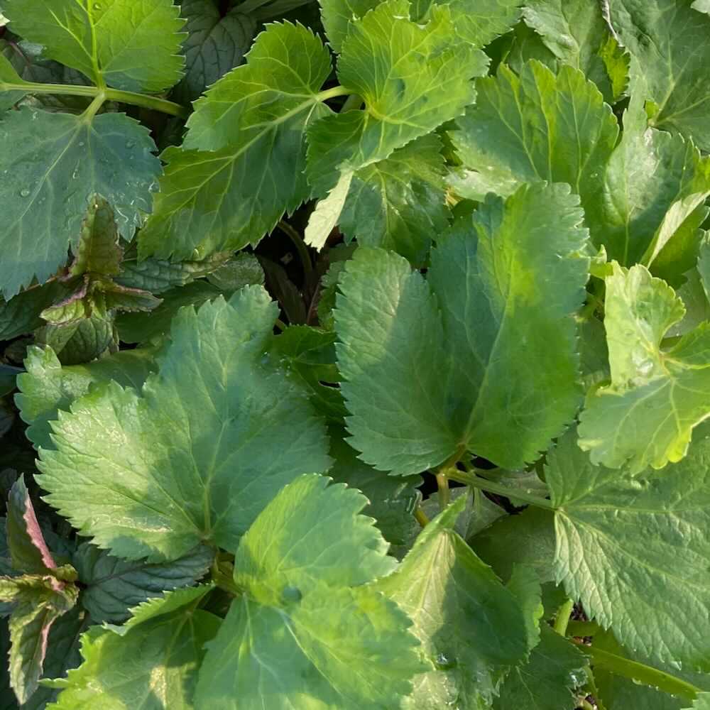 Les feuilles, tiges et pétioles sont consommés frais ou légèrement cuits, avec une saveur douce et fraîche rappelant le persil et le céleri.