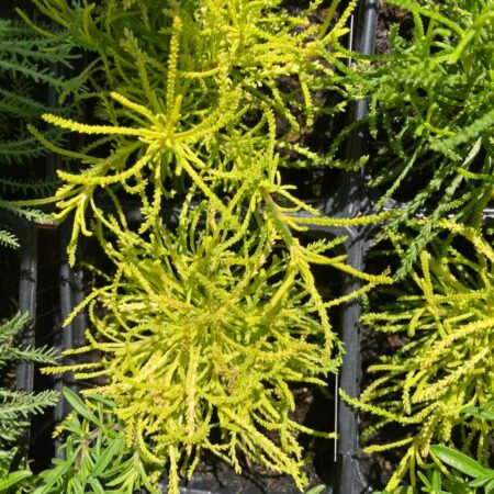 La santoline dorée (Santolina rosmarinifolia ‘Lemon Fizz’) est une vivace méditerranéenne au port compact, au feuillage finement découpé, lumineux et doré, dégageant un léger parfum citronné.