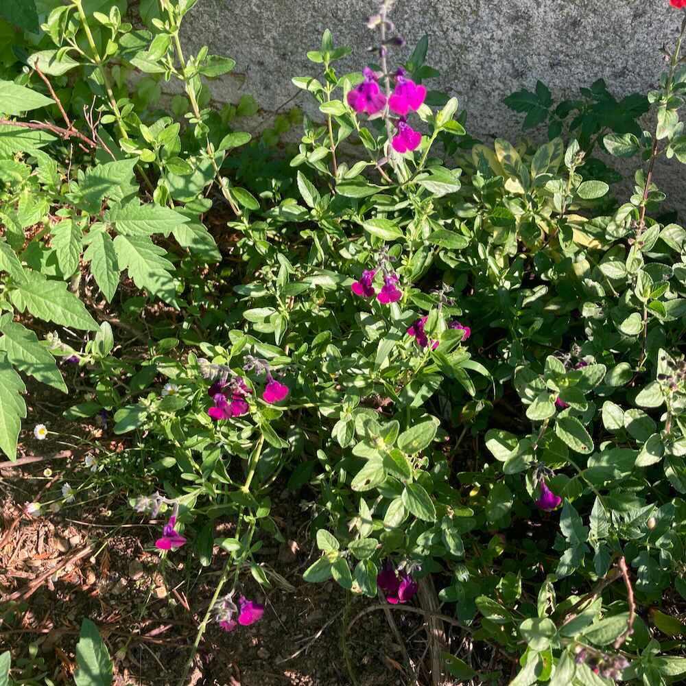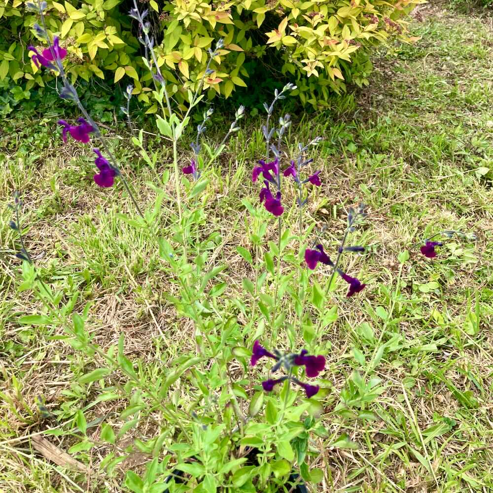 La sauge arbustive violette (Salvia microphylla ‘Papillon de Nuit’) est une vivace buissonnante au feuillage aromatique et aux fleurs violet foncé, qui fleurit abondamment du printemps jusqu’aux premières gelées.