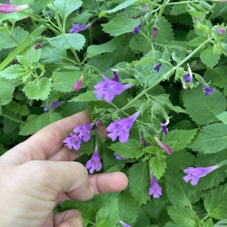 Le thé d’Aubrac (Calamintha grandiflora) ou calament à grandes fleurs est une plante vivace aromatique originaire du Massif central, où elle pousse naturellement sur les plateaux frais et ombragés. Elle se reconnaît à ses feuilles dentelées et à ses fleurs rose pourpré, très mellifères et à la floraison abondante.